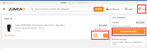 • Select the desired quantity of the product in your cart and proceed checkout.