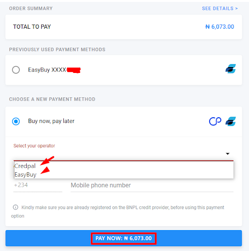 Option 3: Buy Now Pay Later(BNPL) Did you know you can buy now and pay later using our convenient payment options? Take advantage of Easy Buy or Credpal at checkout. For more information, visit this link.