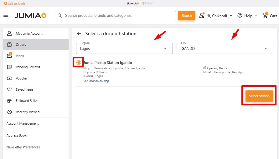 Step 6: Ensure you choose the closest city to your address, tick the PUS of your choice and click on "Select Station" .