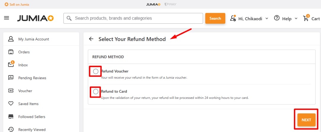 For example, if you purchased an item for N4000 and used a N2000 refund voucher to pay for it, we will refund you N4000. The refund will be made to the same payment method used to purchase the order.